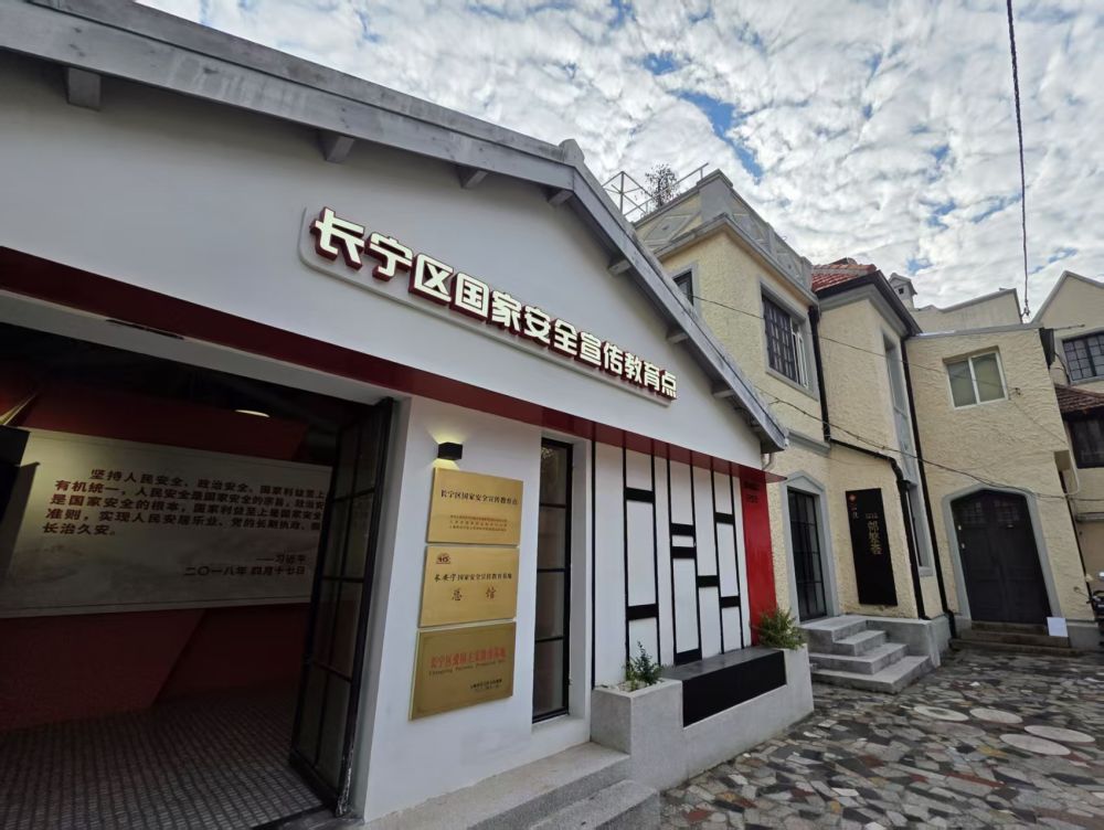 位于三层小楼南墙外侧的长宁区国度安全宣布道授点。新华社记者 王默玲 摄