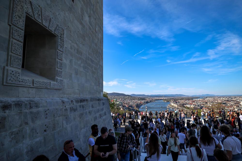 4月5日,游东说念主在匈牙利布达佩斯参不雅重新绽开的都代德拉城堡。