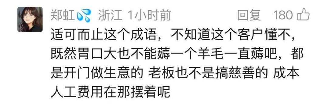 有网友则以为这位主顾不轻松,“还怨雇主,我方心里没数吗”?